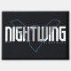 This graphic design cleverly captures the essence of Nightwing, one of Batman's most skilled protégés, through a modern and minimalist aesthetic. The logo features the iconic Nightwing symbol in a sleek, metallic blue that contrasts sharply against the deep black background, creating a striking visual impact. The word "NIGHTWING" is repeated above and below the emblem, with a stylised font that enhances the futuristic vibe of the design. This graphic is not only a nod to Nightwing's agility and stealth but also his evolution from the vibrant, acrobatic Robin into a formidable hero in his own right. The clean lines and sharp angles echo Nightwing's precision and the high-tech nature of his gear and tactics, making this a perfect emblem for fans of the character and the larger DC Universe.