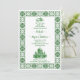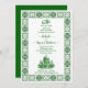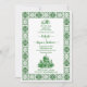 Nikah Islamic wedding invitation emerald green Bismillah calligraphy, green oriental tiles border, vintage mosque drawing.