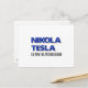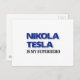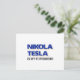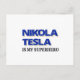 Nikola Tesla is my superhero. Text graphic in black and blue with white lightning.