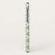 Personalise this chic nile green and white quatrefoil pattern Barely There iPhone X Case embellished with a romantic soft pink rose floral monogram you can personalise with your initial and name.