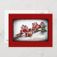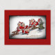 Little Santa's helpers riding down a snowy slope on a sled. These early 1900's elves are dressed in Santa suites.