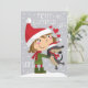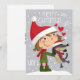 Niña y perro salchicha. Little girl and dachshund. Holiday Card