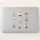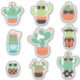 A cool cacti sticker sheet with nine different cacti in different shades of green wearing an assortment of accessories. One bespectacled cactus shows off their pretty pink flowers. Another cool cactus wear their sunglasses with attitude above their prickly spikes. One green cactus has heart-shaped sunglasses while another wears a monocle and bow tie, its flower like a pale green crown. All sit in different flower pots in terracotta, black, and turquoise.