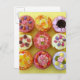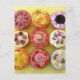Asset ID: 98310482 / Rosemary Calvert / Nine cupcakes each decorated with candy in a unique vibrant coloured design, placed in three rows of three on a yellow background.