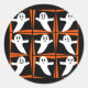 Cute pop art image of nine ghosts on stickers of orange and black. Halloween stickers make great trick or treat gifts, and are fun for decorating all your Halloween projects.