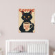 This charming artwork features a black cat holding a coffee mug with the humourous phrase “Because Nine Lives Require Nine Cups.” The retro-inspired design and bold colours make this piece perfect for cat lovers and coffee enthusiasts alike. Ideal for adding a quirky touch to your kitchen, office, or coffee nook, this playful print brings both humour and personality to any space. It’s a fun and unique gift for feline fans who appreciate a little coffee humour in their decor.