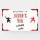 Red, White and Black boy birthday party welcome banner. Ninja.