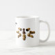 A brown chess pawn surrownded by seven laying white-yellowish pawns. Ninja victory over enemies. Funny coffee mug. Two images on the outer and inner side. You can change or delete the images and the text Ninja.