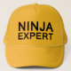 NINJA EXPERT fun slogan on trucker hat, black, bold typography, fun statement, inspired by tv character frank rossitano. perfect for all the ninja trainers out there!
