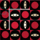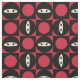 Our cute cartoon ninja face in chequerboard pattern with red dots and black squares is facing alternated directions to work well with almost any sewing project.