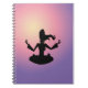 Trendy and refreshing silhouette of a woman meditating on a purple to yellow background.