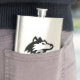 The product is a good size and came exactly as it was pictured. The lid is not attached to the flask, which could be dangerous on drunken nights... The print came out surprisingly well and looks very sharp. Would definitely recommend.