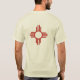 New Mexico T-Shirt; New Mexico, Land of Enchantment in SW textbox on the front, Zia Sun symbol on the back.