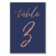 Glam Glitter Rose Gold and Blue Wedding Table Number Card