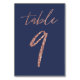 Glam Glitter Rose Gold and Blue Wedding Table Number Card