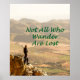 A colour picture of a young woman standing on a mountain overlooking the valley below, with the captain "Not All Who Wander Are Lost"