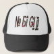This artwork prominently features the phrase "No bigiji" in a bold, stylised typeface, making the text the central focus of the piece. The composition is straightforward, ensuring that the message stands out clearly. The plain, light background provides a perfect contrast to the vibrant text.