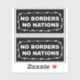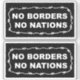 A simple design featuring the phrase “No Borders No Nations” framed by barbed wire.