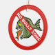 Forbidden sign over angry fish bullying a little one. Custom text at back side.