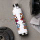 The bottle looks even better in real life. The ice cubes I put in lasts all day! I have my bottle with me all the time. It's summer and having something cold to drink feels amazing. With this bottle I always have something super cold. I have only tried the hot drink once and it lasted a long time as well. The color blue is a navy blue and the white printed on it is vibrant. It printed perfectly. I love my personalized smile water bottle.