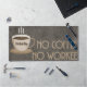 No Coffee, No Workee Desk Mat - a large desk mat printed with the words No Coffee, No Workee and an image of a steaming cup of coffee. The name of the lucky recipient is written in the cup. A great, unique gift for anyone who works at a desk either at home or in an office.