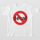 Funny decaf women's t shirt for real coffee drinkers. Caffeine rules! Say no to decaffeinated coffee. Stop decaf coldbrew. End light roast decaf coffee. The word "decaf" is covered with a red prohibited symbol (circle with a line through it). Just say "no" to decaf.