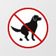 Destei's original black silhouette of a dog that is doing his business. The dog resembles a Golden Retriever and similar breeds with hanging ears. A red no symbol is placed over the dog to illustrate the "no dog pooping allowed" policy.