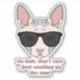 Perched confidently on the Sphynx cat's delicate, triangular face are a pair of stylish, dark sunglasses that add an air of mystery and allure. The lenses of the sunglasses reflect the world around it, giving the impression that this chic feline is always aware of its surroundings and ready to make its next move.