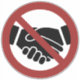 Handshake icon incide a red prohibited circle.
