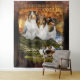 No matter, how you plan to use this tapestry… as a wall drape, a bed or couch spread, a table cloth, or turned into a curtain… it will be a guaranteed eye-catcher. Our artwork has been created with wall draping in mind and comes in a vertical orientation, optimised to look great even at the largest 88x104” size. It depicts a portrait & scene combo of three beautiful Rough Collies sheepherding in the Scottish Highlands, created in a distressed country style and complemented with the (replaceable) quote “A House is not a Home without a Collie” and optional initials. --- NOTES: This design is made for vertical tapestry sizes, a horizontal variant for large bed and couch spreads is available separately. See our “tapestry” product category or the related collection for variants and more. On request, the artwork can be custom-made with your own companions, carefully implemented from your photos. --- CONTACT: For help and custom adaptation requests, contact us on Zazzle, FB, or via email, or visit our related product page at https://petsdreamlands.com/pid-tap-slst001brca2-v. Enjoy!