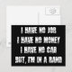 I have no job, I have no money, I have no car, BUT - I'm in a band. Black & White. Printed on t-shirts, hoodies, stickers, party supplies, collectibles and more.