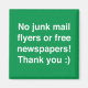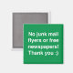 No junk mail - magnetic - sign, green.Put it up during a holiday or part of the year. Leave no marks! Many different colours. Make your mail box or door a little happier with a sign in a colour you like.