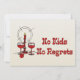 Two glasses of wine, candle, and a rose with the words "No Kids, No Regrets" shows how rewarding life can be for the child-free by choice.