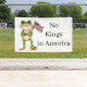 No Kings Frog with American Flag standing on a crown anti trump protest banner sign. Make a political statement with this Democrat Anti-Trump protest banner sign.