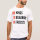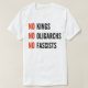 No Kings, No Oligarchs, No Fascists in America! This anti Donald Trump typography design in red and black is a bold pro democracy design for any true American. It's offered here on a light unisex t-shirt for men and women. Show your fellow Americans that you support democracy!