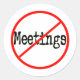 No Meetings sarcastic office humour slogan in distorted letters with a red circle and a line. Don't get trapped in a meeting at work, show them how you really feel with this funny saying.