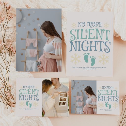 No More Silent Nights Christmas Pregnancy Holiday Card