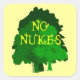 A green No Nukes anti-nuclear slogan with green trees and letters with leaves. Show the world you don't want nuclear energy in your environment.