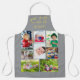 Custom photo apron for Momma (editable to anyone). The photo template is set up for you to add 8 of your favourite pictures which are displayed in a photo collage of portrait, square and landscape pictures. The wording reads "no-one can grill like our momma" and you can also personalise to "my momma", "our mum" etc. The design has a colour palette of grey and yellow and, is lettered in elegant handwritten script and whimsical typography.