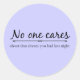 We have all been there. A friend, a coworker, and even a family member have walked up and started a conversation with the dreaded line "I had the weirdest dream last night..." Your eyes instantly glaze over with a mix of agony and regret. Agony that you have to hear about another dream. Regret that you did not get away fast enough. If this describes you, these No One Cares stickers is just for you! Background colours may be changed. Light colours work the best.