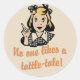 A retro image of a girl wagging her finger with the text "no one likes a tattle tale".