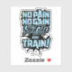 Get inspired to push your limits with this bold "No Pain No Gain, Shut Up and Train" sticker! Perfect for fitness enthusiasts, bodybuilders, athletes, and gym lovers, this high-quality sticker serves as a daily motivation to stay focused and work hard. The dynamic graffiti-style lettering with a splash effect makes it stand out, making it ideal for laptops, water bottles, notebooks, gym lockers, or any smooth surface.