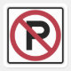 600 mm by 600 mm (24 in by 24 in) No Parking sign with symbol, made to the specifications of the 2004 edition of Standard Highway Signs (sign R8-3a). Uses the Roadgeek 2005 fonts. (United States law does not permit the copyrighting of typeface designs, and the fonts are meant to be copies of a U.S. Government-produced work anyway.) Colours are from [1] (Pantone Red 187), converted to RGB by [2]. The outside border has a width of 1 (1 mm) and a colour of black so it shows up; in reality, signs have no outside border.