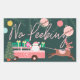 No Peeking Pink Christmas Van Santa & Reindeer Rectangular Sticker