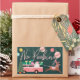 No Peeking Before Christmas Sticker. Celebrate the magical and festive holiday season with our custom holiday no peeking Christmas sticker. Our vintage holiday design features a cute girly pink retro van with bright colourful presents being delivered on top of the van. Santa Claus is peeking his head out from the vintage pink van delivery presents. Rudolf is pulling the pink vintage van. Bright Colourful hanging ornaments frame the top of the sticker. The words "No Peeking" are designed in a fun handwritten style font. Customise with a family monogram. All illustrations are hand-drawn original artwork by Moodthology Papery.
