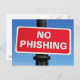 An edited photo of what was originally a no fishing sign changed to read "no phishing". The letters have been carefully placed and coloured to closely match the colouring of the original lettering creating a highly photo-realistic image. Definitely a sign of the times.