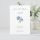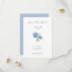 This beautiful oh so chic and minimal wedding 'Save The Date' card showcases a floral blue hydrangea design, elegant brush script text, event date and address, along with a contemporary set of fonts. The back includes a lovely dusty blue background. Youthful and trendy, this card sets a joyful tone. Use Edit tool to change the background colour if you prefer.