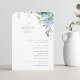 This beautiful floral hydrangea flat wedding invitation card exudes a fresh, elegant and youthful tone. The front of the card includes invitation text, a wedding website address, wedding info as well as a lovely arrangement of blue hydrangeas. The set of fonts are modern and stylish against a white background. Personalise this elegant and stylish wedding invite to make it your very own.