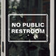 Window sign for business shops with text "no public restroom". Great for convenience stores and other locations.