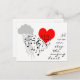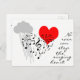 Large silhouette image of musical notes and clefs in the shape of a heart, a small image of a red heart behind the black notes. Grey cloud and rain to the left. The text No rain can stop the singing heart to the right. The text I love you so much, Jenny on the back side. The one of a kind funny customisable post card for anyone. You can change or delete everything. Two postage stamps Singing Heart are also available.